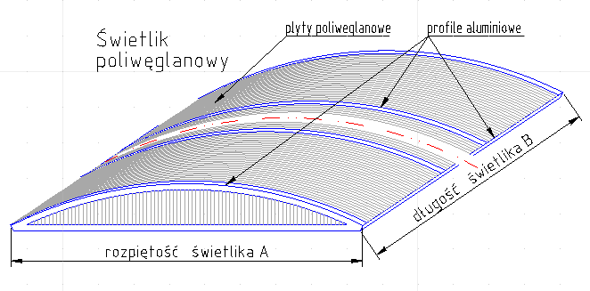 * Płyta 16mm Świetlik z wypełnieniem płytą komorową 16mm kolor kryztał K=1,77 [W/m2/K] |