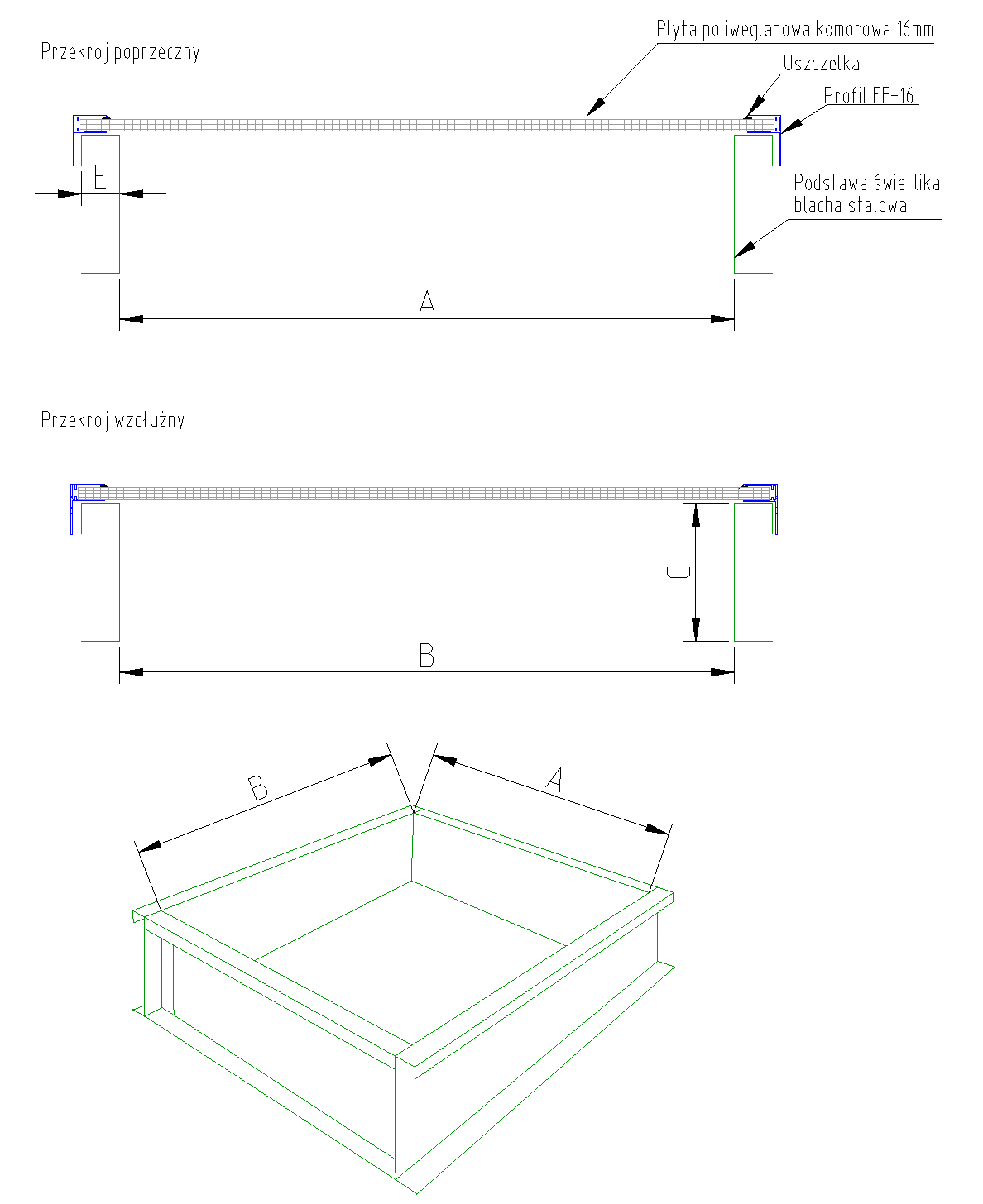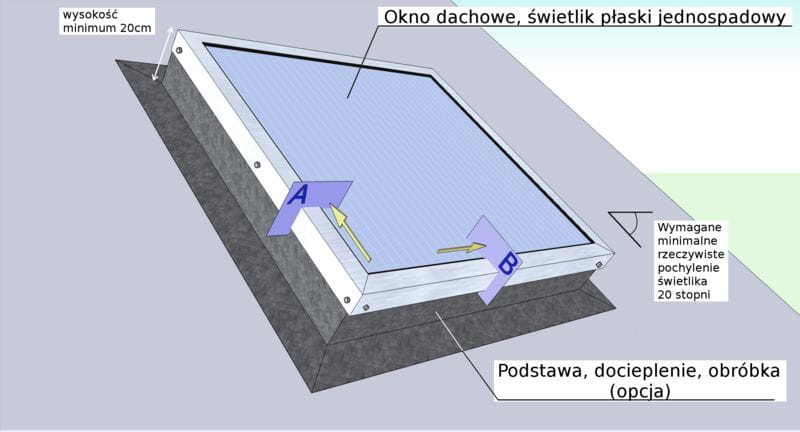 * świetlik nie zawiera ocieplenia ani obróbek blacharskich